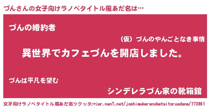 | 男性向けラノベタイトル風あだ名 | 『誰もが恐れるあのづんが、ぼくの専属メイドになるようです。』 |