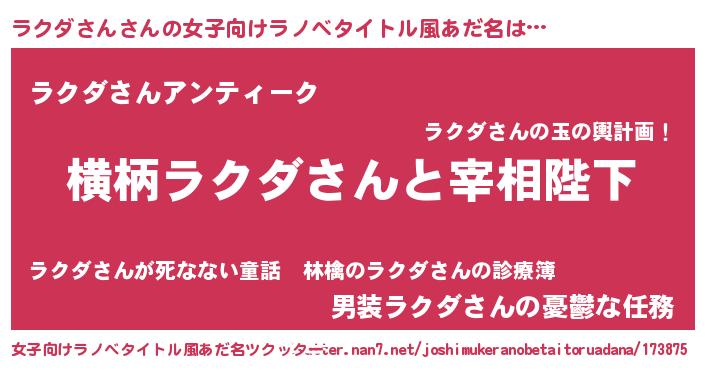 | ヘコむあだ名 | 『ラクっ子』『つくし』『ラクにゅー』 |