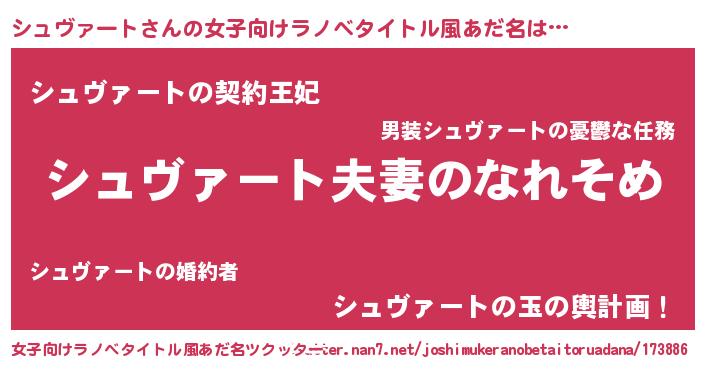 | 男性向けラノベタイトル風あだ名 | 『おまえをオタクにしてやるから、俺をシュヴァートにしてくれ! 』 |