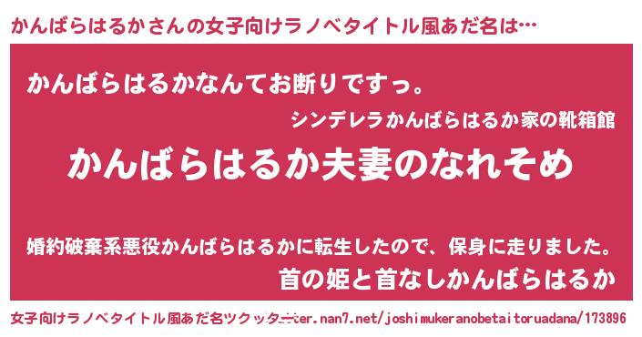 | 男性向けラノベタイトル風あだ名 | 『おまえをオタクにしてやるから、俺をかんばらはるかにしてくれ! 』 |