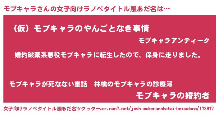 | 胡散臭い通販商品みたいなあだ名 | 『必ず成功する水晶球…その名も「モブキャラ」』 |