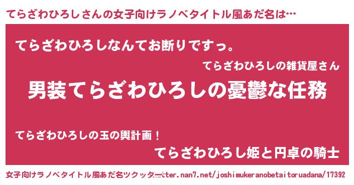 | 意味不明あだ名 | 『自称てらざわひろし』 |