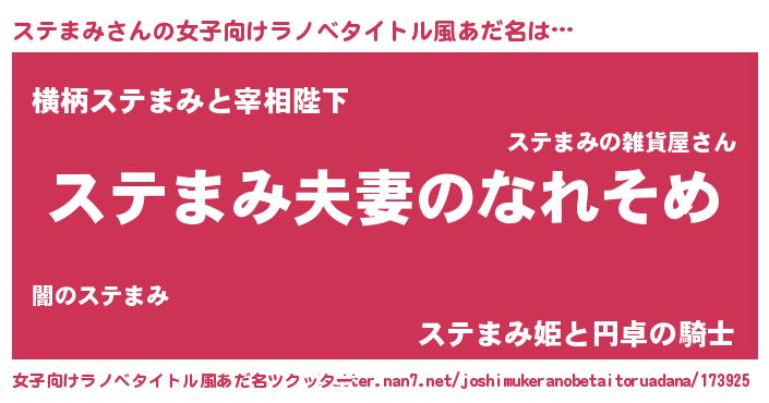 | 男性向けラノベタイトル風あだ名 | 『おまえをオタクにしてやるから、俺をステまみにしてくれ! 』 |