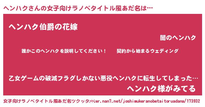 | ファンタジー風あだ名 | 『ヘンフェル』『エターナルヘンハクー』 |