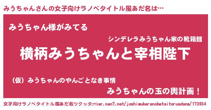| 男性向けラノベタイトル風あだ名 | 『みうちゃんに滅ぼされるだけの簡単なお仕事です』 |