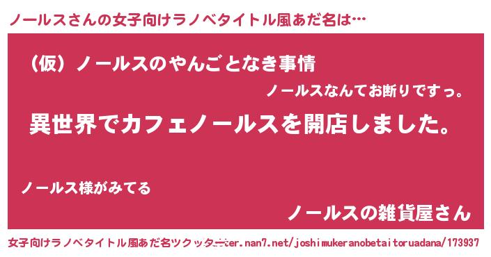 | 男性向けラノベタイトル風あだ名 | 『誰もが恐れるあのノールスが、ぼくの専属メイドになるようです。』 |