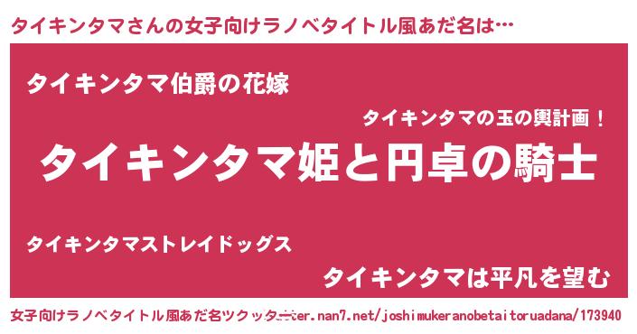| 男性向けラノベタイトル風あだ名 | 『タイキンタマアートオンライン』 |