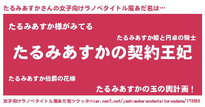 | 胡散臭い通販商品みたいなあだ名 | 『来世でも幸せになれる健康食品…その名も「たるみあすか」』 |