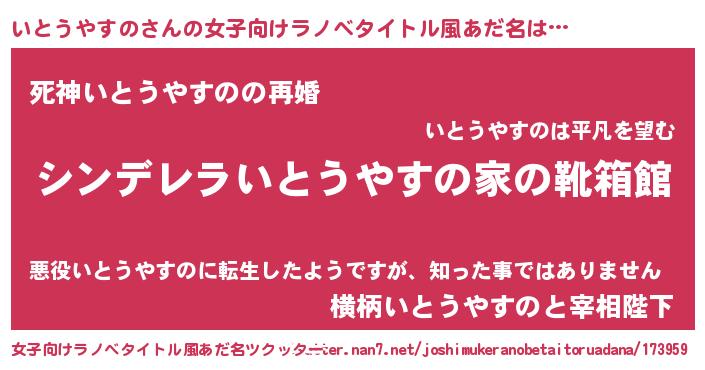 | 男性向けラノベタイトル風あだ名 | 『冴えないいとうやすのの育てかた』 |