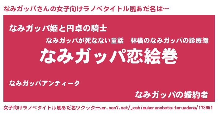 | 男性向けラノベタイトル風あだ名 | 『ノーゲーム・ノーナミガッパ』 |