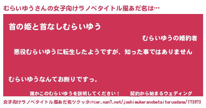 | 男性向けラノベタイトル風あだ名 | 『この素晴らしい世界にむらいゆうを!』 |