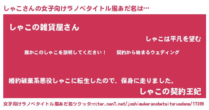 | ファンタジー風あだ名 | 『シャフェル』『エターナルシャコー』 |
