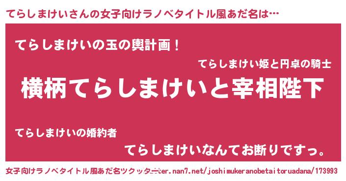 | 男性向けラノベタイトル風あだ名 | 『てらしまけいに滅ぼされるだけの簡単なお仕事です』 |