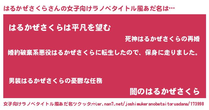 | 男性向けラノベタイトル風あだ名 | 『転生したらはるかぜさくらだった件』 |