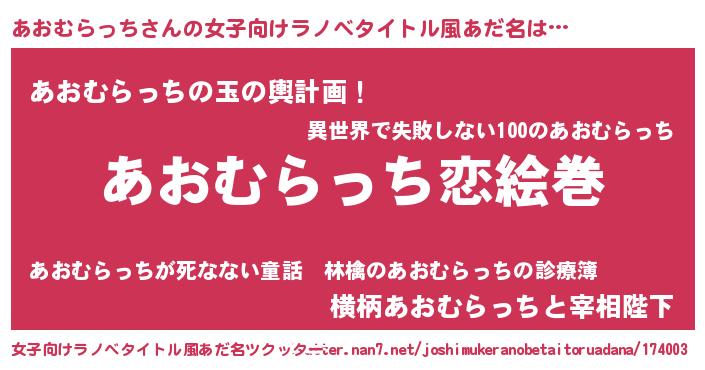 | 男性向けラノベタイトル風あだ名 | 『ノーゲーム・ノーアオムラッチ』 |
