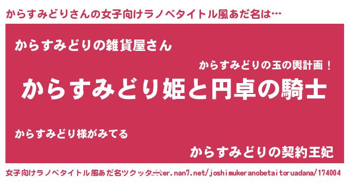 | 男性向けラノベタイトル風あだ名 | 『からすみどりの憂鬱』 |