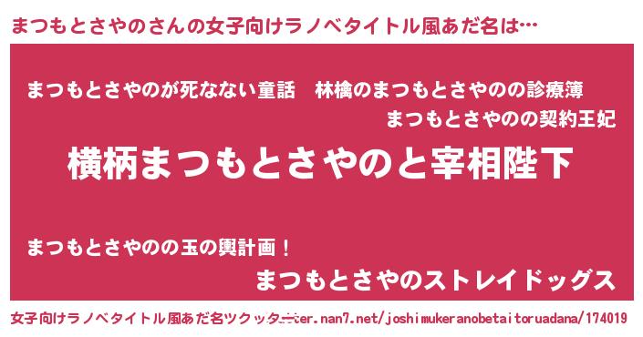| 男性向けラノベタイトル風あだ名 | 『まつもとさやのに滅ぼされるだけの簡単なお仕事です』 |