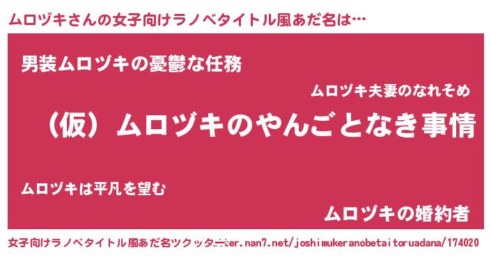 | 男性向けラノベタイトル風あだ名 | 『ムロヅキの憂鬱』 |