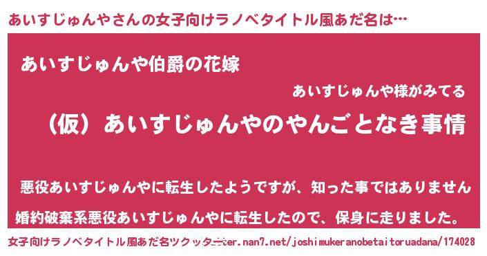 | 男性向けラノベタイトル風あだ名 | 『あいすじゅんやの憂鬱』 |