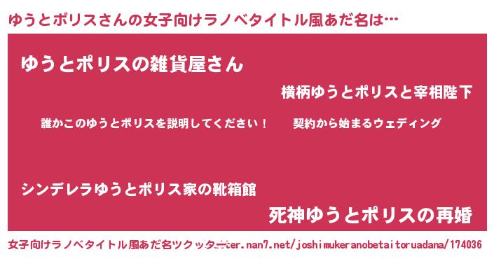 | 胡散臭い通販商品みたいなあだ名 | 『億万長者になれるブレスレット…その名も「ゆうとポリス」』 |