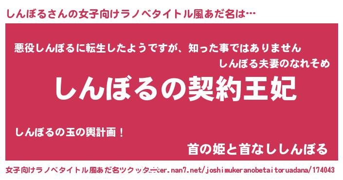 | 男性向けラノベタイトル風あだ名 | 『しんぼるという概念が存在しない退屈な世界 』 |