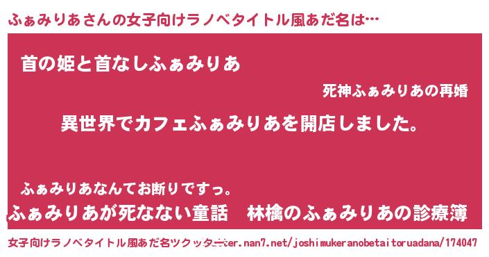 | 意味不明あだ名 | 『永久保存ふぁみりあ』『自称ふぁみりあ』 |