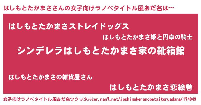 | 男性向けラノベタイトル風あだ名 | 『緋弾のハシモトタカマサ』 |