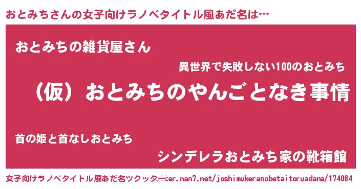 | 男性向けラノベタイトル風あだ名 | 『おとみちの憂鬱』 |