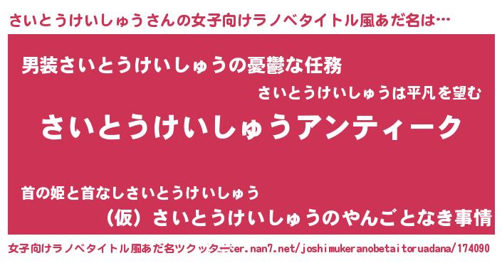 | 肩書あだ名 | 『さいとうけいしゅう総統』 |