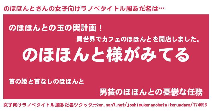 | 意味不明あだ名 | 『とにかく怪しいのほほんと』 |
