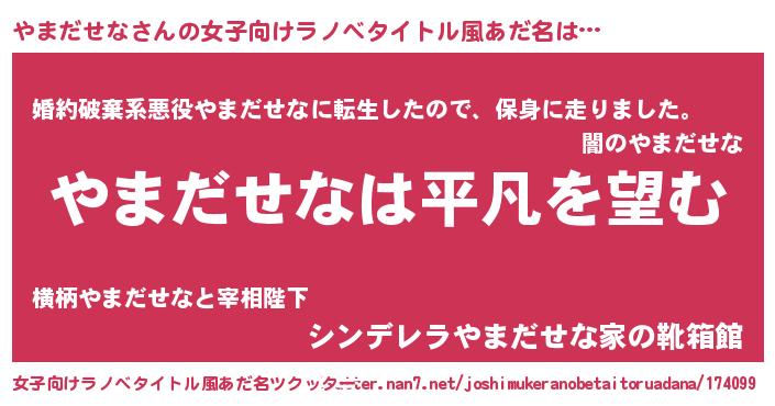 | 男性向けラノベタイトル風あだ名 | 『ダンジョンにやまだせなを求めるのは間違っているだろうか』 |
