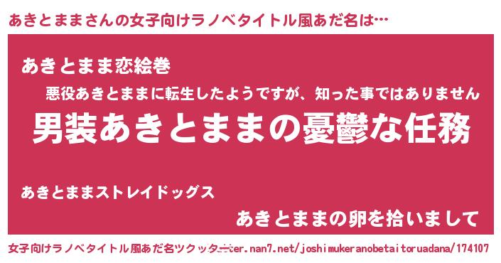| 男性向けラノベタイトル風あだ名 | 『うちのあきとままが世界を掌握している!』 |