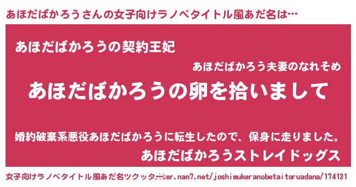 | 男性向けラノベタイトル風あだ名 | 『ダンジョンにあほだばかろうを求めるのは間違っているだろうか』 |