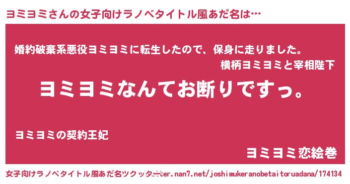 | ヘコむあだ名 | 『ヨミヨミ(爆)』『ヨミにゅー』 |