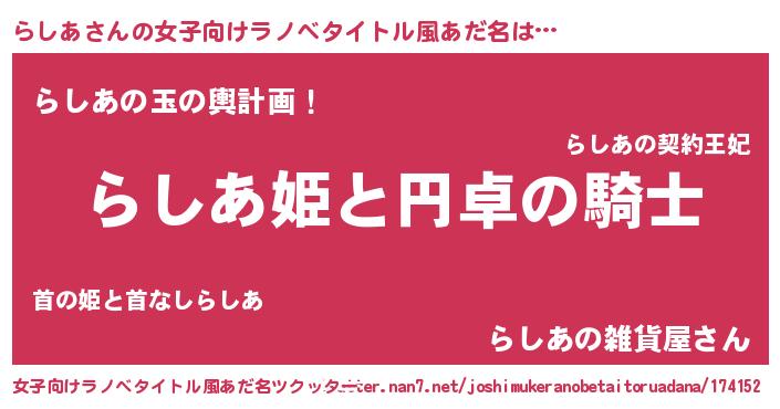 | 男性向けラノベタイトル風あだ名 | 『ラシアアートオンライン』 |