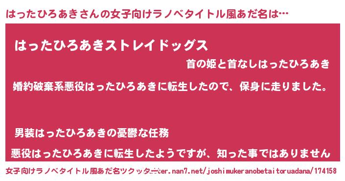| 胡散臭い通販商品みたいなあだ名 | 『ガンによく効く冬虫夏草…その名も「はったひろあき」』 |