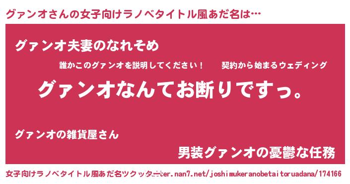 | 恥ずかしいあだ名 | 『グァンオデラックス』『グァっちょ』 |