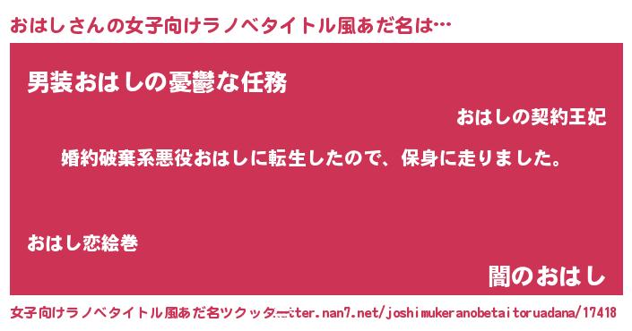 | 男性向けラノベタイトル風あだ名 | 『オハシスレイヤー』 |