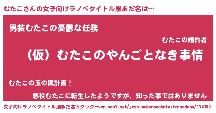 | 男性向けラノベタイトル風あだ名 | 『むたこの憂鬱』 |