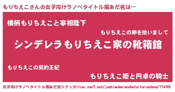 | 胡散臭い通販商品みたいなあだ名 | 『モテモテ間違いなしブレスレット…その名も「もりちえこ」』 |