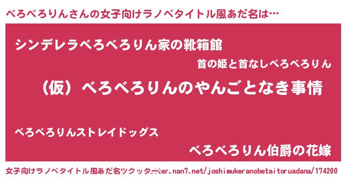 | 男性向けラノベタイトル風あだ名 | 『べろべろりんの憂鬱』 |