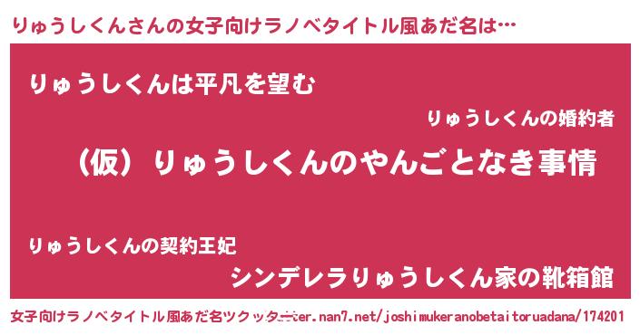 | 胡散臭い通販商品みたいなあだ名 | 『必ず成功する霊験あらたかなお札…その名も「りゅうしくん」』 |
