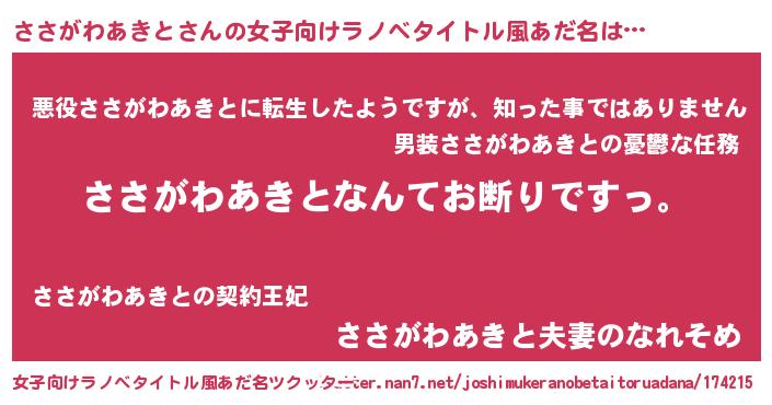 | 男性向けラノベタイトル風あだ名 | 『魔法科高校のささがわあきと』 |
