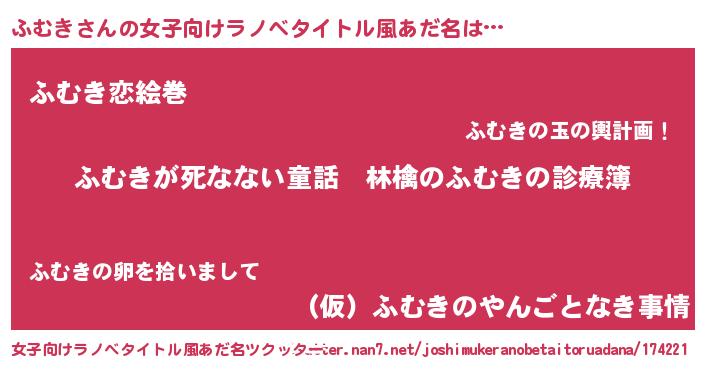 | 意味不明あだ名 | 『住所不定無職ふむき(43歳)』 |