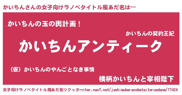 | 男性向けラノベタイトル風あだ名 | 『魔法科高校のかいちん』 |