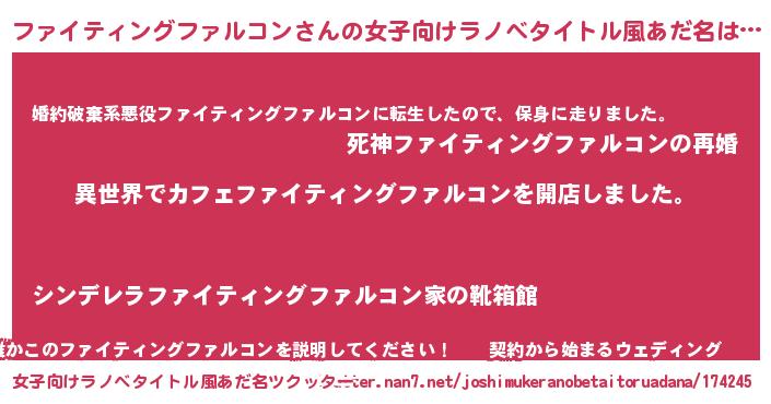 | 男性向けラノベタイトル風あだ名 | 『誰もが恐れるあのファイティングファルコンが、ぼくの専属メイドになるようです。』 |