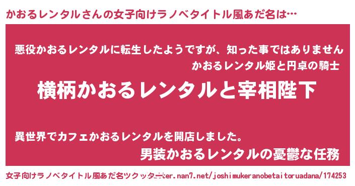 | 男性向けラノベタイトル風あだ名 | 『かおるレンタルに滅ぼされるだけの簡単なお仕事です』 |