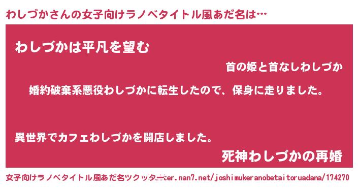 | 男性向けラノベタイトル風あだ名 | 『ワシヅカスレイヤー』 |