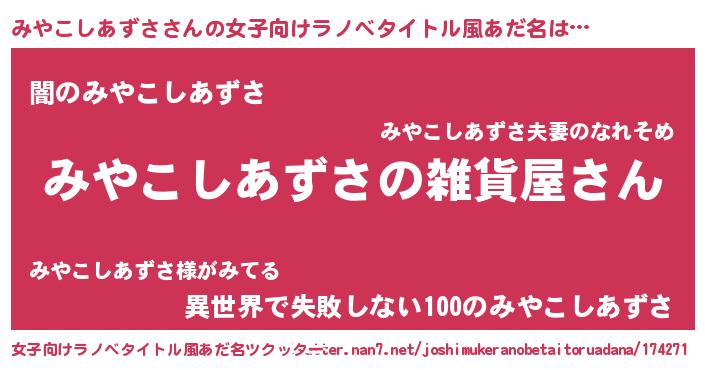 | 欧米人風あだ名 | 『みやこしあずさクリステル』 |