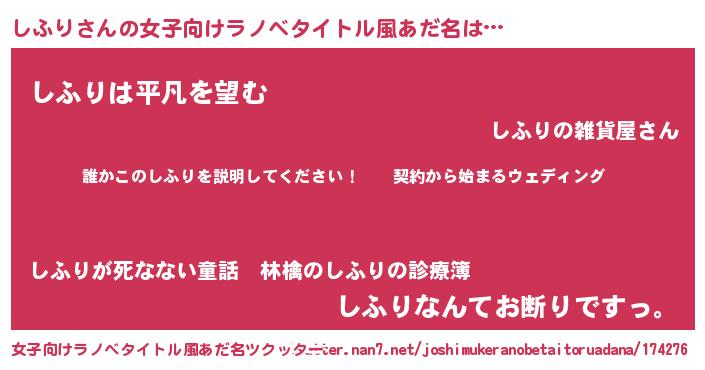 | ヘコむあだ名 | 『しふにー』『しふぷりん』『つくし』 |